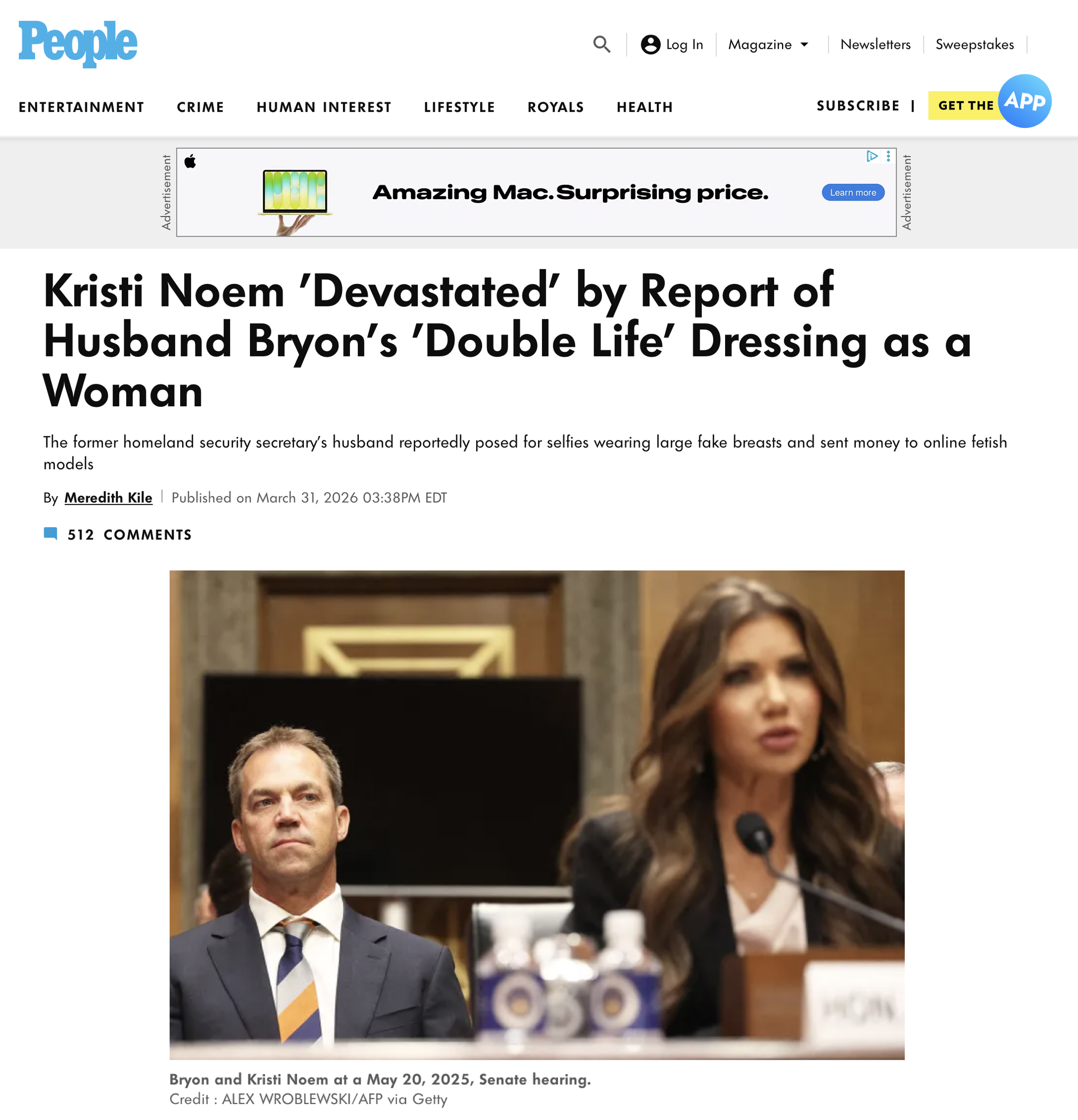 Heaven knows that there is enough heartache and pain in this world. Things that bring joy should be celebrated. Some people find joy in nature, others in creating art, some derive these feelings from having a dog. If Bryon Noem achieves happiness through his clothes, let him be, for some of the other options listed might be a source of trauma for him.