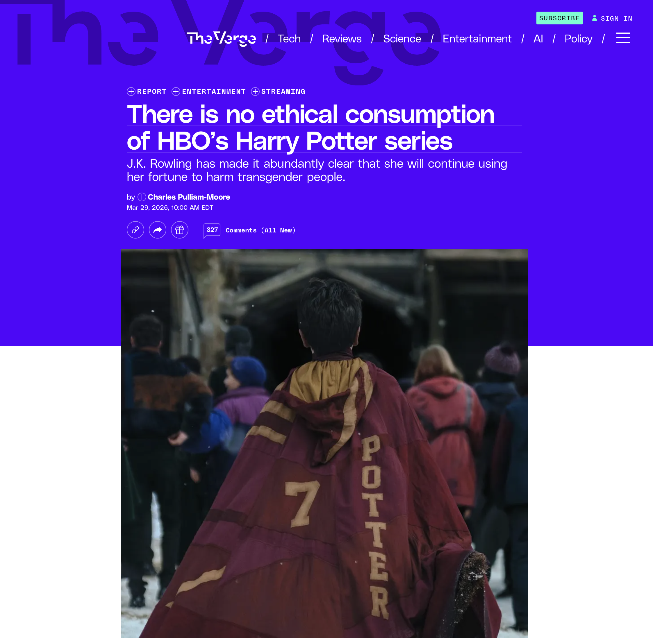Let future generations enjoy the Harry Potter tales, for now I stand with The Verge saying there is no ethical way to watch or read anything from the Harry Potter series.