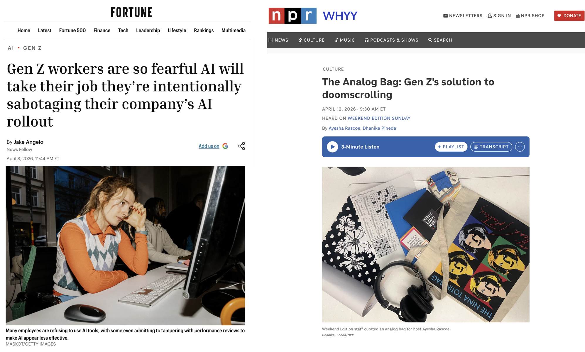 There are a few stories published this week that give me some hope that young people will push back against the direction we are heading. Carrying around an analog bag and reviving the hobbies of their grandparents is a great start, but sabotaging their company's AI rollout is the type of energy that I really applaud.