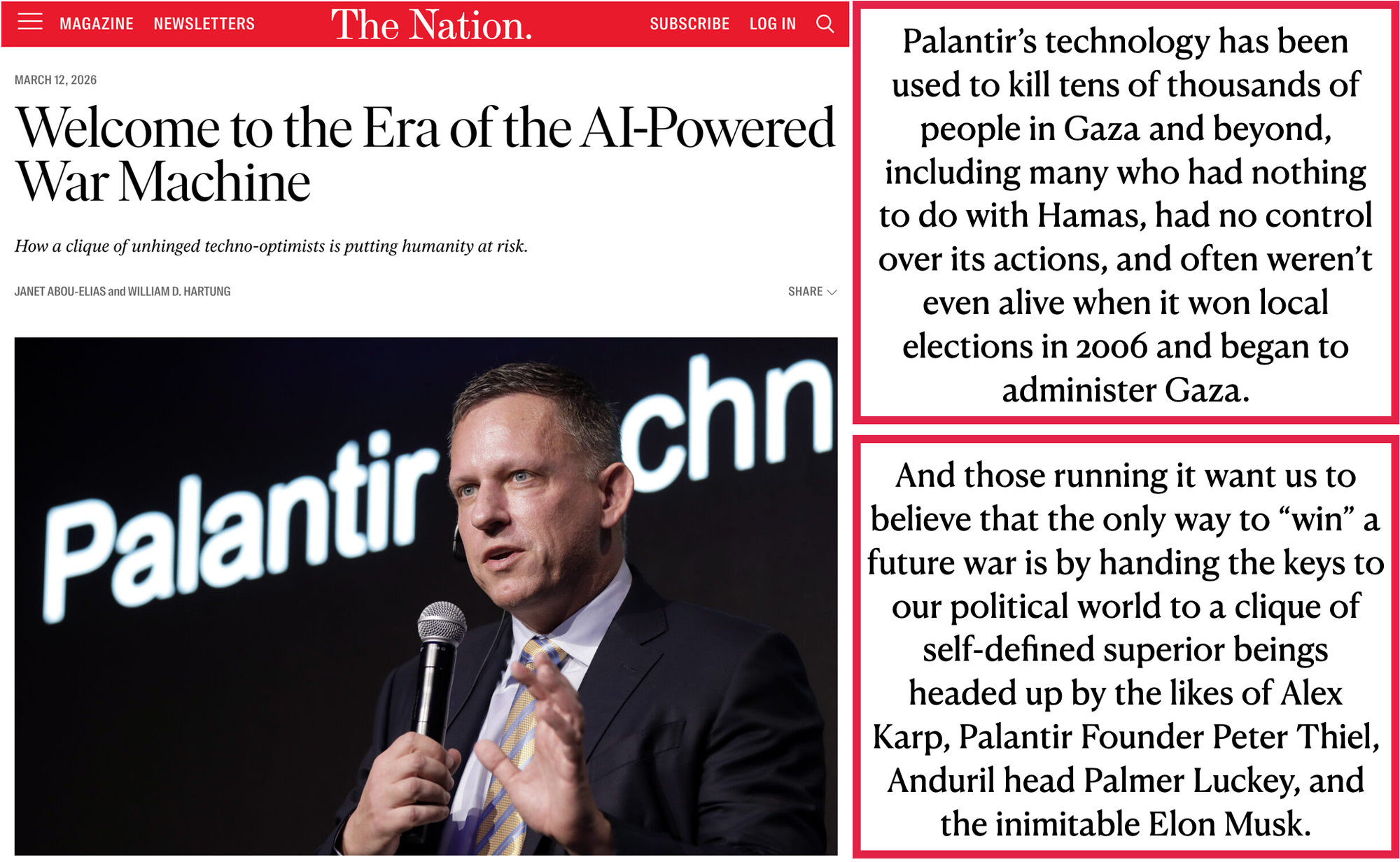 We now have a few Western governments that have been taken over by psychopaths who have no qualms about violating international agreements and who smirk at the idea of rules of engagement. But as always, these monsters are powerless without the work of the engineers and scientists who bring their warped visions of humanity to life.
